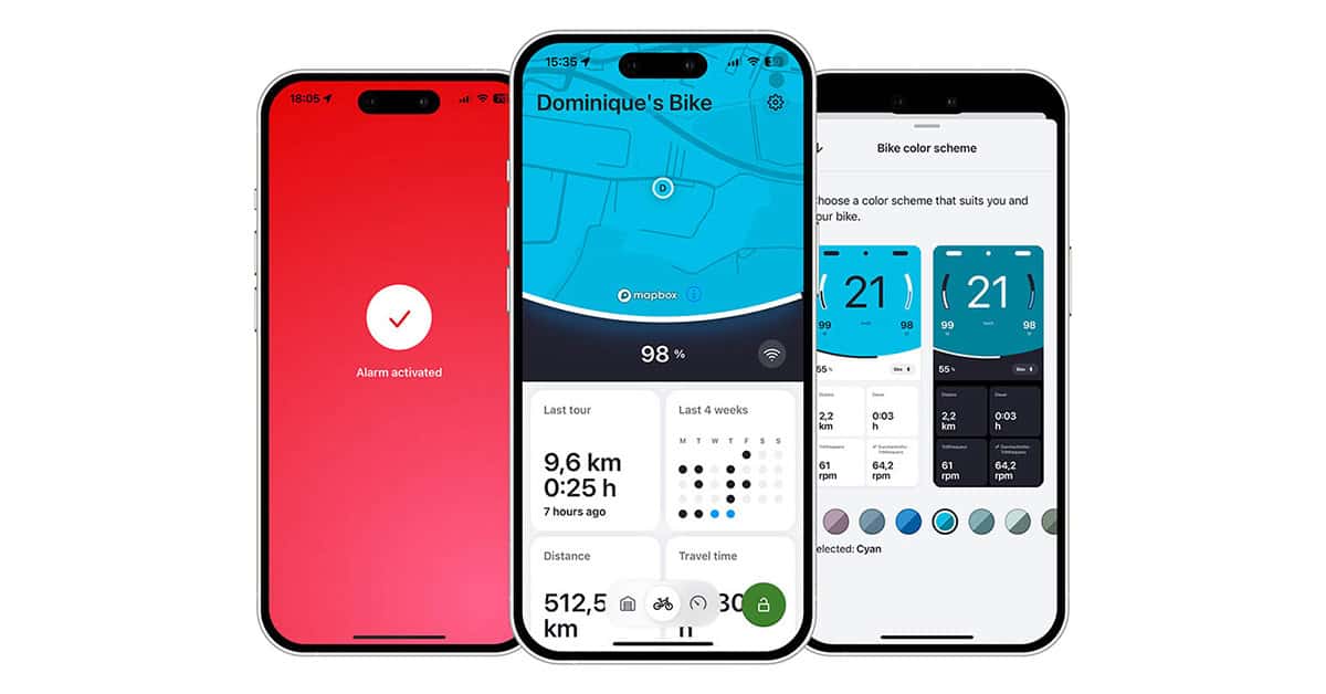 - Gepersonaliseerde app-styling: individuele aanpassing van het kleurenschema van de app aan de framekleur – passend bij de eigen bike.